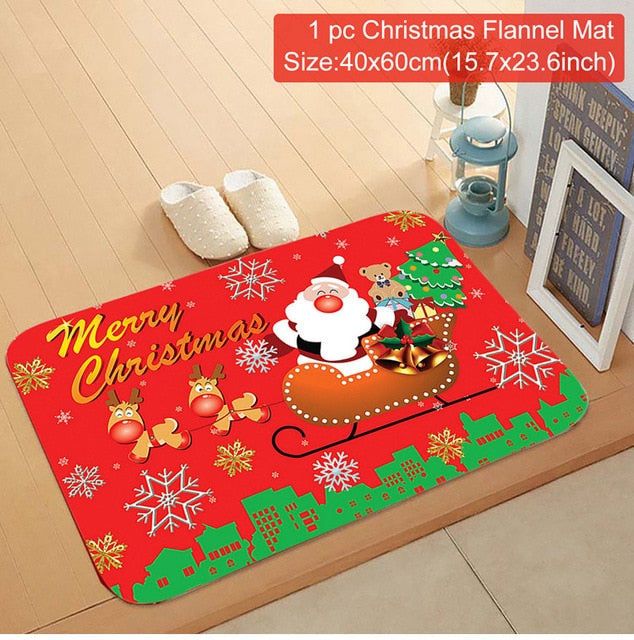 Santa Claus Christmas Flannel Carpet Merry Christmas Decoration for Home